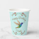 Cute personalizable Happy Birthday paper cup con un colibrí de zafiro dorado. Se puede personalizar para diferentes ocasiones como cumpleaños, duchas de bebé, aniversarios, etc. El tamaño del tipo de letra y el estilo del tipo de letra pueden cambiarse haciendo clic en "Editar usando la herramienta de diseño". Todas las imágenes de colibríes son tomadas de las acuarelas originales por C. Dobbins. El Sapphire de cola dorada es una especie de colibrí nativa de Bolivia, Brasil, Colombia, Ecuador, Perú y Venezuela.