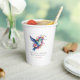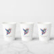 El diseño de este vaso de papel es perfecto para servir bebidas a sus huéspedes. Cuenta con un colibrí acuarela con una corona floral sobre un fondo blanco, con texto personalizado en gris y rosa. Esta colección incluye varios colibríes diferentes.