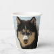 Estas tazas de papel tienen un Husky lindo sobre ellas.