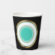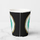 El diseño original de Leslie Sigal Javorek que aparece en estas tazas imita el aspecto de la porcelana de hueso fino con un centro Aqua que gradualmente se desvanece hasta un final blanco casi translúcido en un anillo negro de pelo, un amplio borde de dorado cepillado y una llanta negra. Elegante estilo Art Deco / Streamline. Mira los productos de coordinación de HoMeArts.
