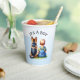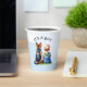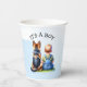 tazas de papel de Baby Shower. Niño de color agua dulce con tirantes sentados al lado de un perro pastor alemán. Un gran toque para hacer que cada miembro de la familia se sienta especial.