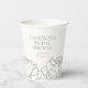 Perfecto para bodas en el jardín en primavera o verano, este diseño elegante de peonías para bridal shower cuenta con un borde de ilustraciones de flores de peonías en verde polvo deslucido en la parte inferior. Personalice estos vasos de papel para bridal shower con el nombre de su evento, la fecha y el año.