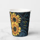 Taza de papel de boda de denim blue jeans rústico amarillo girasol. Hermoso diseño floral para sus huéspedes. Derechos de imagen de Marg Seregelyi Photography.