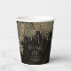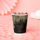 Opte por un estilo de enlucido hollywoodiense utilizando las piezas de esta suite boda como se muestra, con joyas que caen en cascada de hojas de palmera incrustadas en diamantes, o borre las joyas para un aspecto un poco más conservador. Este conjunto presenta hojas en oro brillante contra un fondo texturado del rico color del café negro. La taza de papel boda que se muestra aquí tiene un borde de hojas brillantes, un mensaje personal de 'Gracias' y los nombres de la novia y el novio y la fecha boda. Introduzca fácilmente sus detalles utilizando la plantilla proporcionada. Vea el vínculo de colección en esta página para ver todos los elementos coincidentes de este hermoso conjunto o busque ID830 para ver opciones de color adicionales para este diseño.