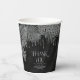 Opte por un estilo de enlucido hollywoodiense utilizando las piezas de esta suite boda como se muestra, con joyas que caen en cascada de las hojas de palmera incrustadas en diamantes o borre las capas de joyas para un aspecto un poco más conservador. Este conjunto presenta hojas en plata brillante contra un carbón oscuro, fondo texturado. La taza de papel boda que se muestra aquí tiene un borde de hojas brillantes, un mensaje personal de 'Gracias' y los nombres de la novia y el novio y la fecha boda. Introduzca fácilmente sus detalles utilizando la plantilla proporcionada. Vea el vínculo de colección en esta página para ver todos los elementos coincidentes de este hermoso conjunto o busque ID830 para ver opciones de color adicionales para este diseño.