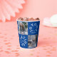 Joyous Yuletide paper cup with two family photos, family name and year. Photo templates via Pixabay licensed under CC0 and must be replaced with your own photos