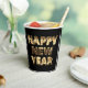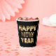 Cartas de aspecto negro y dorado Feliz Año Nuevo, Nochevieja, tazas de papel Fiesta de Año Nuevo, elegir con o sin tapa