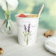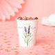 Lavanderas de época - Cupas de papel para bodas rústicos y de granja - flores púrpuras pintadas digitalmente con delicadas hojas verdes, nombres y fecha para ser personalizadas por usted antes de la orden.