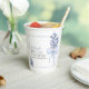 Tazas florales elegantes de color azul polvoriento con calas, rosas y un acento de lazo de cinta. Ideal para bebidas en duchas de novia, bodas y celebraciones de compromiso. Parte de la colección Lazo de cinta azul polvoriento Calla Lily.