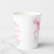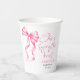 Agrega un toque dulce y elegante para terminar con estilo la decoración de la mesa de despedida de soltera de Ella Está Atando el Nudo con estas elegantes tazas de papel con lazo rosa claro.