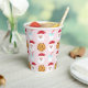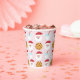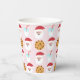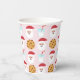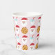 Esta adorable taza de papel muestra a Santa con su leche y galletas en un fondo rosado.