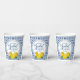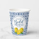Una taza de papel de limón de bonito con ducha de novia decorada con limones y azulejos azules italianos. Perfecto para tu ducha de novia con limón azul azules. Diseñado para ti por Blackberry Boulevard.