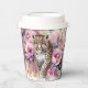 La imagen presenta un ilustracion muy detallado de un joven leopardo rodeado por una variedad de flores vibrantes y florecientes. El leopardo, con su piel de foco y sus ojos expresivos, ocupa un lugar destacado en el centro, creando un punto focal sorprendente. Las flores de los alrededores, predominantemente en tonos rosa y violeta, aportan un toque suave y caprichoso a la composición. El fondo incluye salpicaduras de oro y de colores pastel, lo que realza el ambiente artístico y de ensueño de la imagen. Esta cautivadora mezcla de vida silvestre y elementos florales hace que la imagen sea visualmente atractiva y única, perfecta para productos que buscan evocar una sensación de elegancia y belleza natural.