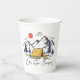 A charming illustration featuring a tent set against a backdrop of mountains, trees, and a bright red sun. The playful message "Let's Go Camping" invites adventure and outdoor fun, with a cozy campfire adding to the camping atmosphere.