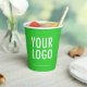 Easily personalize our 8 ounce paper cups with your business logo and custom text. These FDA approved paper cups are for cold and hot drinks. The dimensions for the 8 oz cups are 3.75 inch x 3 inch. Available with or without lids. Also available in 12 oz size. Designed in lime green and other colors (all colors are customizable). Sold in sets of 8. Low minimum order quantity and no setup fee. Printed in the U.S.A.