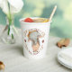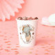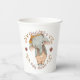 Colores de agua adorables, tazas de fiesta de ducha de una niña pequeña, con una niña elefante en proa y overoles en un estilo boho, en tonos naranja y sabio.