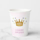 A little princess is on the way! Girl baby shower with gold crown and silver and gold stars with dreamy pink watercolor background