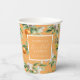 Tazas de papel bonitas para su Desayuno de Novia o Brunch de Novia. El diseño presenta un patrón de acuarela de frutas cítricas que incluyen naranjas, limones, flores y vegetación variada. Personalice con el nombre de la novia y la fecha de la lluvia. Un bonito detalle para su barra de cócteles, tazón de ponche o estación de agua