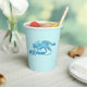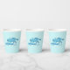 Un lobo azul estilizado (Canis lupus) proyecta una sombra a medida que pasa por un terreno nevado. Añade tu propio texto en el reverso.