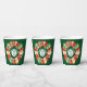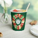 Estos hermosos vasos de papel fiesta de los Navidades de la compañía están hechos personalizado con el logo de su negocio dentro de un festividad rojo, verde, globos dorados envueltos en un fondo verde. Decoración de vacaciones contemporánea para una cena de vacaciones o celebración con empleados o clientes.
