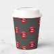 Los labios rojos brillantes en el diseño de patrones de fondo gris.