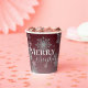 Disfrute de sus bebidas favoritas de vacaciones con un conjunto festivo de copas de papel navideño de Navidades de helados Red Merry y Bright Snowflakes. El diseño de la taza de papel incluye copos de nieve cayendo con el saludo de Merry y Bright en una fuente moderna y un suave overlay blanco. También hay artículos de regalo y de vacaciones disponibles con este diseño.