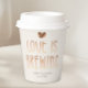 Serve drinks in style with these elegant Love Is Brewing coffee paper cups, designed for coffee-themed weddings, bridal showers, and engagement celebrations. Featuring warm neutral tones, a hand-painted coffee bean heart, and customizable names and date, these cups add a cohesive and polished touch to your event.