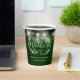 Paneles de madera de luces de cadena de esmeralda rústica, tazas de papel para boda floral, personalizadas con sus nombres y fecha especial. Diseñados por Thisisnotme©