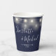Vasos De Papel Luces de Cadena Firma Script Azul Marino Boda