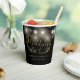 Luces de cadena negras y doradas y tazas de papel para boda floral personalizadas con sus nombres y fecha especial. Diseñadas por Thisisnotme©
