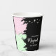 Magical kids birthday with stars and bubbles coming from a star shaped wand against a light pink and mint green background.