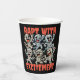 Si encuentras que Hallowe'en es uno de los días más divertidos del año, entonces estos extravagantes vasos de papel, que incluyen la breve observación "Rapto con emoción", con un estilo de letra espeluznante en naranjas de calabaza y lindas momias bailarinas sobrealegradas generadas por IA, que celebran su gran noche, son una excelente manera de mantener tu poción (o veneno) favorita al brindar por la cucharlatana ¡Es la mejor época del año! El reverso muestra un diseño idéntico. Diseño © W.H. Sim. Ver más en zazzle.com/word2art
