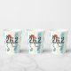 Caracter de maratonista 26.2 con gorra roja y zapatos azules. Divertido Marathon Sports con temática para el corredor de veintiséis puntos de dos millas!  Graciosas Copas de Maratón para personas que corren largas distancias o que corren instructores o entrenadores.  El fondo es un patrón rayado azul y amarillo para resaltar la figura deportiva.