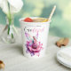 Maravillosos pegatinas de primer cumpleaños para las tazas de papel fiesta de su hijo, con un hada mágica sentada en una flor. Por el primer cumpleaños de un chica.