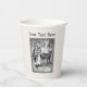 Estas tazas de papel son blancas con un dibujo vintage en blanco y negro dentro de un marco negro ornamentado de la capucha de la Pequeña Carretera Roja que habla con el lobo en el bosque bajo los árboles en la parte delantera y trasera. Personalizar el texto con las plantillas en la parte delantera y posterior.