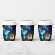 Fabuloso, brillante, azul y amarillo, mariposa nocturna sobre fondo oscuro.