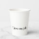 Cafés clásicos de papel con el texto "Amo mi trabajo". Puede ser verdad. Puede ser sarcasmo. ¿Quién va a decir?