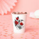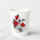 Contorno, luna de media luna mecánica con engranajes, decorada con rosas rojas con tallo negro y hojas sobre fondo blanco. Steampunk