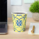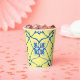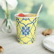 Taza de papel mediterráneo amarillo y azul.