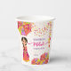 Mehndi linda novia india de henna con paraguas rosados y amarillos y vasos personalizados de papel.