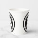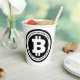 Celebre con estilo con suministros de fiesta personalizado. Estos vasos de papel están listos para ser personalizados con sus propios mensajes con un mensaje en la parte superior y uno en la parte inferior. En el centro hay un símbolo de Bitcoin en negro contra un fondo blanco. El diseño aparece a ambos lados de la taza.