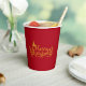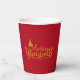 Add festive sparkle to your holiday party with this elegant red and gold Merry Christmas paper cup. Designed with a bold crimson background and stylish gold typography featuring a Christmas tree and hanging bells, this premium disposable cup brings instant luxury to your seasonal celebrations. Ideal for Christmas dinners, work events, family gatherings, winter weddings, or Christmas Eve hot chocolate nights. Designed to coordinate beautifully with matching plates, napkins and table décor — elevate your Christmas entertaining with style and convenience!