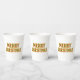 Fun festive paper cups with "Merry Christmas and a Happy New Year "on it. Lettering in a cheery red and green pattern outlined in gold. Great for holiday parties when getting together with family, friends or co-workers.