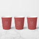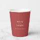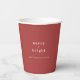 Sencilla alegría + navidades brillantes tazas de papel vacacional. Estos vasos de papel de los navidades presentan un fondo rojo profundo con texto de máquina de escribir en blanco. Todo el texto puede ser personalizado y reemplazado por cualquier texto de su elección.