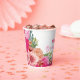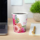 Vasos de papel para desayuno nupcial de acuarela floral rosa pálido para tu fiesta de desayuno nupcial. El diseño presenta hermosas flores en tonos de rosa, naranja y blanco. Estos vasos de papel para desayuno nupcial de acuarela floral son perfectos para una fiesta de desayuno nupcial con temática de jardín.
