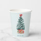 Add a touch of Christmas magic to your home with these cute seasonal paper cups, featuring a classic snow-covered Christmas tree topped with a red bow and surrounded by festive wrapped gifts. The customizable text at the bottom adds a warm seasonal message, making these paper cups a perfect addition to your holiday dinner party with family and friends.