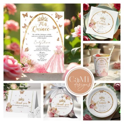 Quinceanera Butterflys Pink Blush GownDiseñado por CaMi Designs