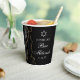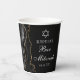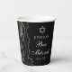 El agate de moda negro y oro decora el costado de este moderno y personalizado bar Mitzvah partido a favor de la copa de papel. El nombre de su hijo está escrito en un hermoso guión formal bajo la Estrella de David. Decoración perfecta para una moda, elegante familia judía celebrando que su hijo fue llamado a la Torah.