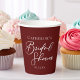 Esta elegante taza de papel de ducha de novia con un color burdeos presenta un sencillo guion blanco para una novia en un lugar de celebración de la noche. Abran el romance con este rico y audaz color. La tipografía minimalista y romántica favorece.
