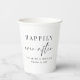 tazas de papel de moda para la recepción de tu boda, fiestas de compromiso, cena de ensayo, duchas de parejas y otras celebraciones de bodas que presentan "Feliz eterno después" en una tipografía elegante y un guión moderno elegante, tus nombres y fecha de boda.
